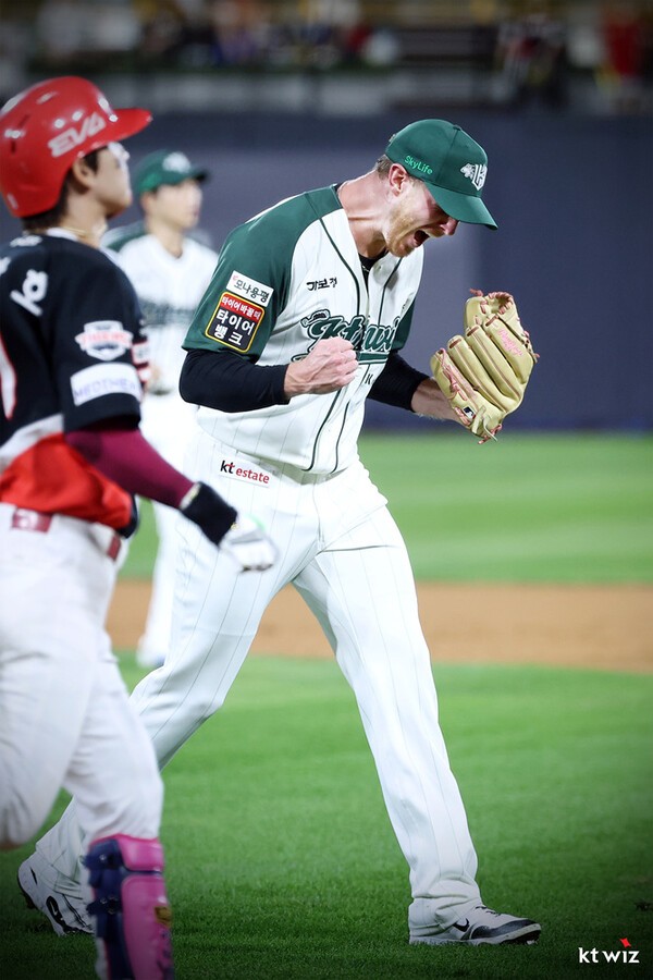 [SPORTALKOREA] 한휘 기자= 프로 무대 입문 후 2번째로 나온 역투가 KT 위즈를 벼랑 끝에서 구해냈다.