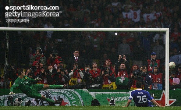 첼시에 희망이 보이기 시작했다. 맨유의 세 번째 키커로 나온 호날두가 페트릭 체흐의 선방에 막혔고, 마지막 키커로 나선 테리가 성공만 하면 첼시는 트로피를 들어 올릴 수 있는 상황있었다.
