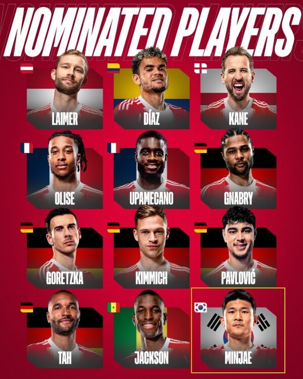 요나탄 타, 레온 고레츠카, 요주아 키미히, 알렉산다르 파블로비치(이상 독일) 마이클 올리세, 다요 우파메카노(이상 프랑스), 해리 케인(잉글랜드), 루이스 디아스(콜롬비아) 등 핵심 전력들의 이름이 보였다.