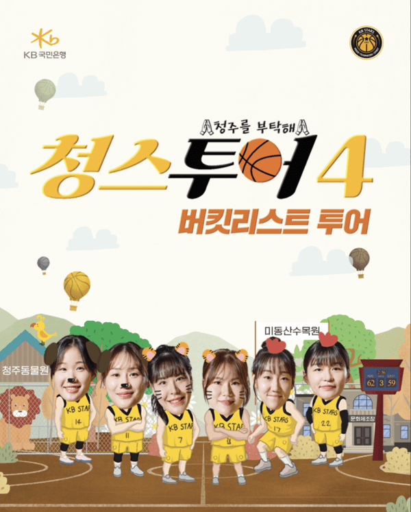KB스타즈가 이번에 공개한 '청스투어 시즌4' 에서는 재미, 맛, 힐링, 감성, 예술 등 5가지 테마로 ‘버킷리스트 투어’를 구성해 선수단이 청주의 곳곳을 누비며 다채로운 매력을 전할 예정이다.