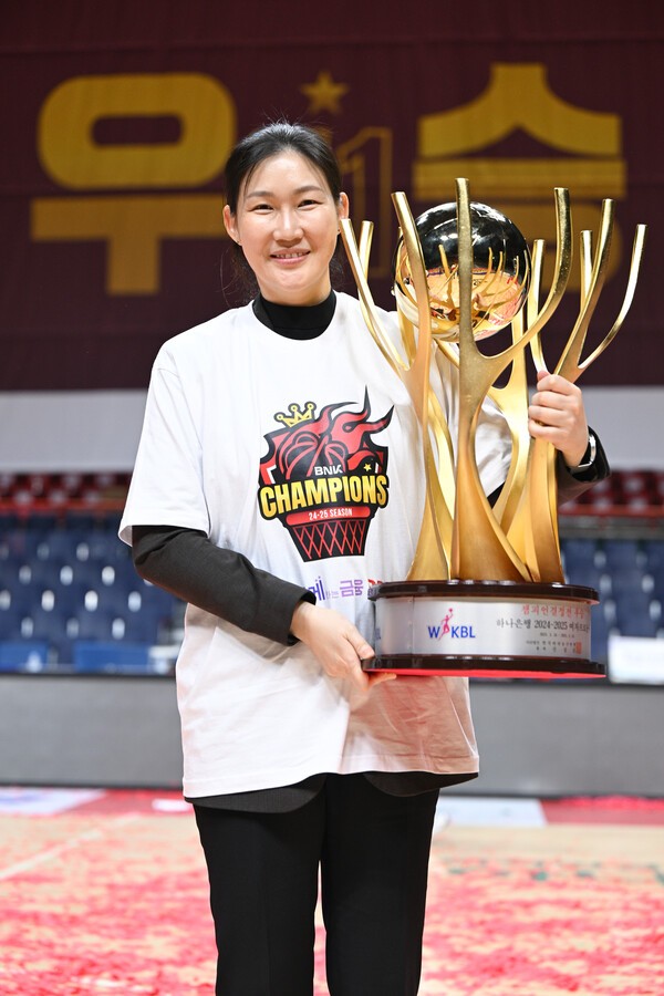 지난 2024-2025시즌 BNK 썸은 창단 6년 만에 첫 우승 트로피를 들어 올렸다. 정규시즌을 2위로 마친 뒤 4강 플레이오프(PO)에서 용인 삼성생명, 챔피언결정전에서 아산 우리은행을 연거푸 꺾었다. 2021년 BNK 썸 지휘봉을 잡은 박 감독은 WKBL 역사상 우승을 이룬 첫 여성 사령탑이자 선수와 감독으로 모두 우승한 최초의 기록을 세우기도 했다.