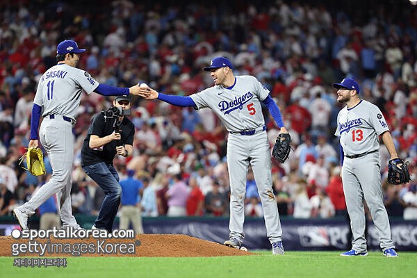 알렉스 베시아가 올라와 2아웃까지는 잡았으나 여전히 주자는 1, 3루 상황. 다저스는 다시 몸을 풀던 사사키 로키를 결국 마운드에 올렸다. ‘타격왕’ 트레이 터너가 타석에 섰다. 사사키의 2구를 쳤다. 힘없는 타구가 바운드된 후 2루수 토미 에드먼에게 잡혔다.