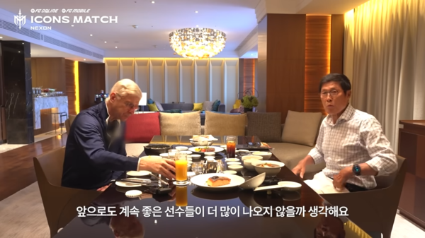 9일 유튜브 채널 ‘EA SPORTS FC 온라인’에는 ‘“벵거 형님 밥 먹어요!” 두 전설의 한 끼 식사 | 2025 아이콘 매치’라는 제목의 영상이 공개됐다. 영상에는 2025 아이콘 매치 행사에 참석한 차범근과 FC 스피어의 감독으로 참가한 벵거가 식사 자리를 함께하며 대화를 나누는 장면이 담겼다.