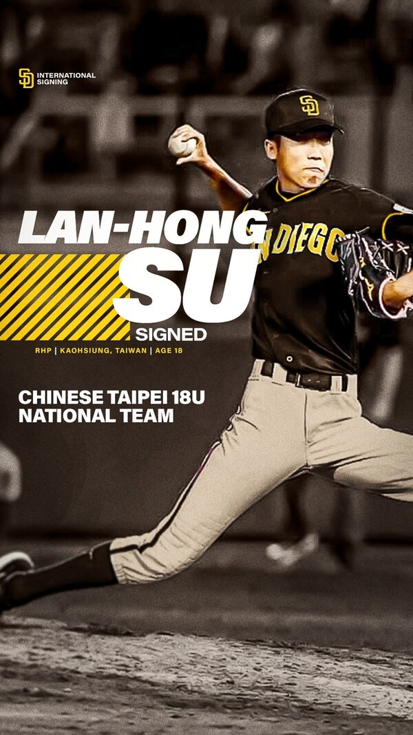 샌디에이고는 지난 10일(한국시간) 대만 출신 우완 수란훙(Lan-Hong Su) 영입을 공식 발표했다. 이번 계약은 샌디에이고가 2016년 이후 처음으로 대만 선수를 품은 사례다.