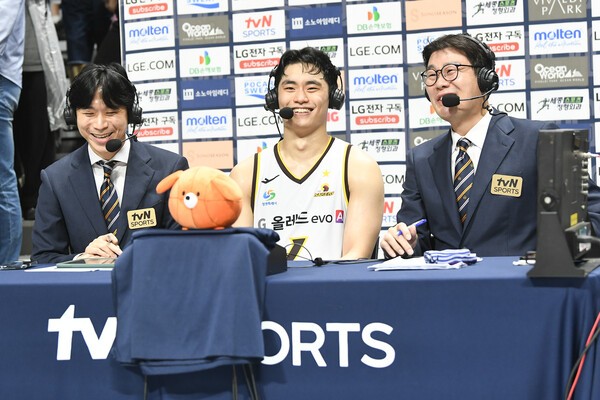 유기상은 "그런 모션을 (양)준석이랑 평소에 연습할 때부터 많이 준비를 했습니다"라고 이야기하며 "비시즌 연습경기에서도 몇 번 해봤다"라고 성공 비결을 들려줬다.