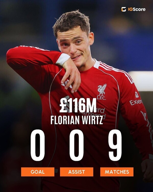 그 활약을 눈여겨본 리버풀은 올 여름 1억 1,600만 파운드(약 2,225억 원)의 이적료를 지불하며 비르츠를 품었지만, 프리미어리그와 UEFA 챔피언스리그를 포함한 9경기에서 아직 단 한 개의 공격포인트도 기록하지 못하고 있다.