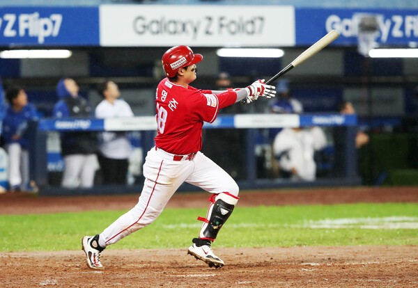 포스트시즌 SSG의 팀 타격 지표는 타율 0.188(96타수 18안타) 4홈런 9타점 OPS 0.576으로 처참하다. 이마저도 3경기 연속 홈런으로 날아다니는 고명준(OPS 1.250)이 끌어 올린 것이다. 올가을 5타석 이상 들어선 SSG 선수 가운데 OPS 0.8을 넘는 선수는 고명준이 유일하다.