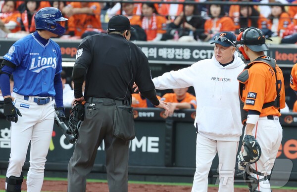 구자욱의 불만과 폰세의 항변, 그리고 박기택 주심의 주의 조치. 어떤 것이 합당한 것일까. 가장 핵심적인 것은 심판이 폰세에게 내린 주의 조치다. 이는 올해 정규시즌 개막을 앞두고 추가된 시행 세칙을 근거로 한다.