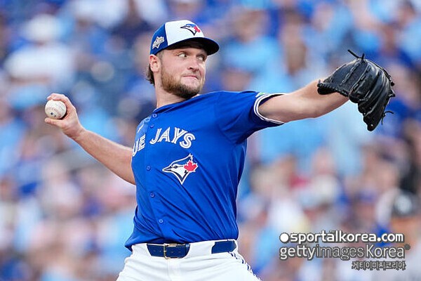 트레이 예세비지(토론토 블루제이스)가 25(한국시간)일 캐나다 온타리오주 토론토 로저스 센터에서 열리는 2025 MLB WS LA 다저스와 경기에 선발로 등판한다.