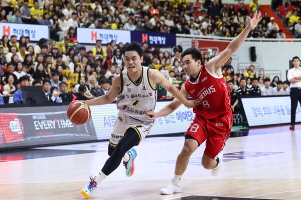 유기상의 상승세를 지켜본 정관장은 팀 내 최고의 수비수인 김영현을 유기상에 붙였다. 또 표승빈, 소준혁 등 에너지 레벨이 높은 선수를 투입해 끊임없이 그를 괴롭혔다. 일명 '덮는 수비'로 유기상을 코너, 베이스 라인으로 몰아 슛 기회조차 주지 않았다. 2대2 게임에서도 더블팀을 갈 정도였다.