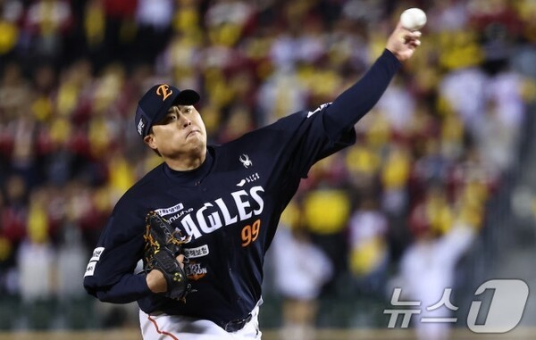 류현진은 27일 서울 잠실야구장에서 열린 프로야구 2025 신한 SOL뱅크 KBO 포스트시즌 한국시리즈 2차전 LG 트윈스와 경기에 선발 투수로 나섰다.