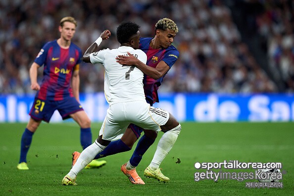 비니시우스가 분노를 터뜨린 시점은 27일 바르셀로나와의 엘 클라시코 도중. 이날 레프트 윙으로 선발 출전한 비니시우스는 측면에서 활발하고 위협적인 움직임을 선사하며 레알의 2-1 승리에 기여했다.