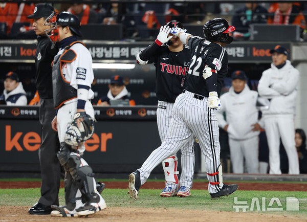 김현수의 방망이가 매섭게 돌았고, 타구는 그대로 우중간 담장을 넘어 관중석에 떨어졌다. 김현수의 올해 포스트시즌 첫 홈런이자, 한국시리즈 통산 3번째 홈런. LG에 2-1의 리드를 안기는 결정적인 홈런이었다.