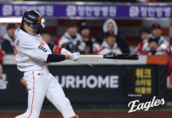 [SPORTALKOREA] 한휘 기자= 50억 원 몸값을 한 번에 치르는 결정적인 적시타를 심우준(한화 이글스)이 터뜨렸다.