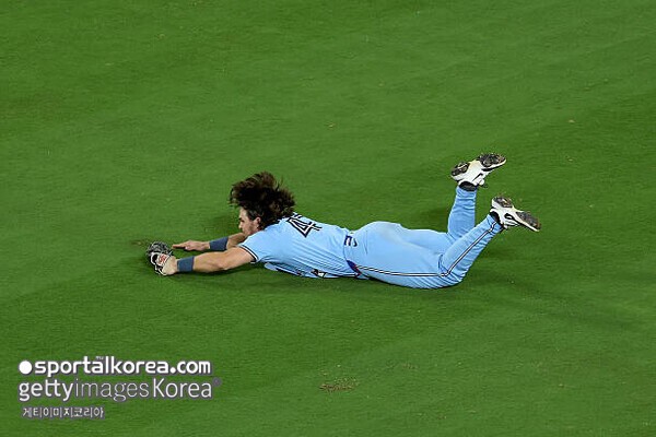 운도 따르지 않았다. 6회 3번째 타석에서 우측으로 잘 맞은 라인드라이브 타구를 날렸다. 그런데 우익수 애디슨 바저의 다이빙 캐치가 오타니의 안타를 지워버렸다. 시속 117.3마일(약 188.8km)의 ‘총알 타구’가 아웃으로 둔갑했다.