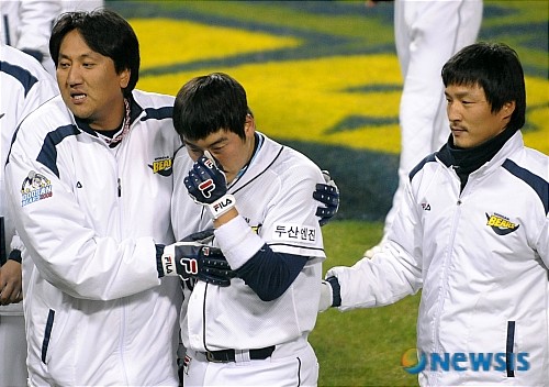 하지만 한국시리즈에서는 타율 0.048(21타수 1안타) 1타점이라는 처참한 결과를 남겼다. 특히 1승 3패로 벼랑 끝에 몰린 5차전 9회 말 1사 만루 기회에서 1-2-3 병살타를 쳐 두산의 우승 가능성을 손수 지웠다. 그리고 김현수는 서럽게 눈물을 흘렸다.