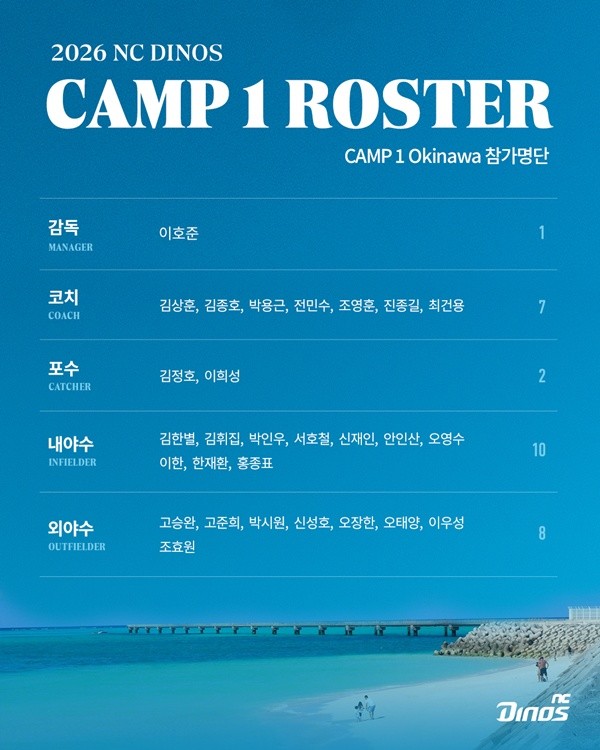 특히 이번 ‘CAMP 1 오키나와’는 NC 창단 이후 처음으로 일본에서 진행되는 훈련이라는 점에서 의미가 크다. 선수단은 11월 4일 부산에서 출국해 24일 부산으로 귀국할 예정이며, 오키나와 기노자손 야구장에서 야수 20명이 참가해 집중적인 훈련을 소화한다.