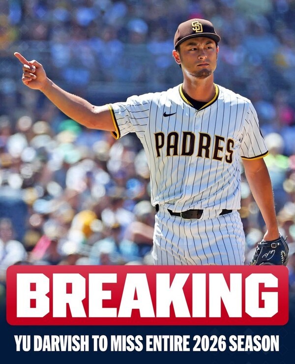 [SPORTALKOREA] 김지현 기자= 팔꿈치 수술로 2026시즌을 통째로 쉬게 된 다르빗슈 유(샌디에이고 파드리스)가 아시아 투수 최다승 기록 추격에 제동이 걸렸다.