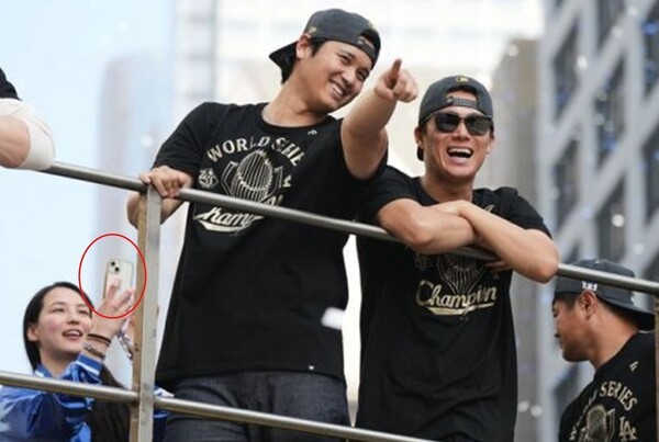 [SPORTALKOREA] 김지현 기자= '슈퍼스타' 오타니 쇼헤이(LA 다저스)와 함께 월드시리즈 우승 퍼레이드에 참석한 아내 다나카 마미코가 들고 있던 구형 핸드폰이 화제를 모았다.