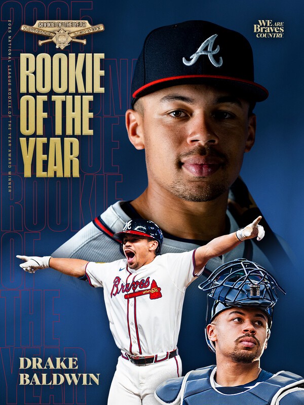 애틀랜타 브레이브스 드레이크 볼드윈은 11일(이하 한국시각) 메이저리그(MLB) 사무국이 발표한 2025 내셔널리그(AL) 재키 로빈슨 올해의 신인(신인왕) 수상자로 호명됐다.
