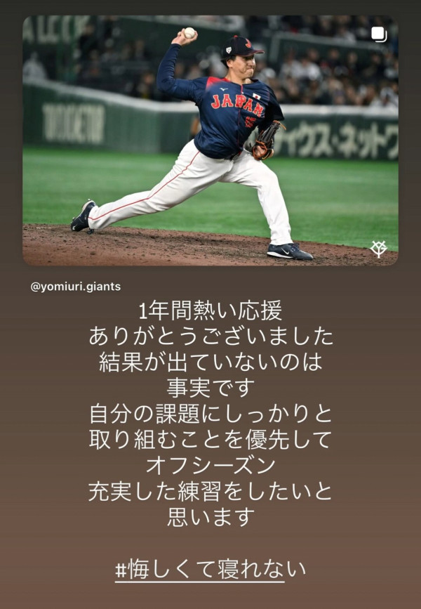 일본 프로야구(NPB)를 대표하는 특급 불펜투수 오타 타이세이(요미우리 자이언츠)가 한일전에서 동점 홈런을 허용한 장면에 대해 분한 마음을 드러냈다.