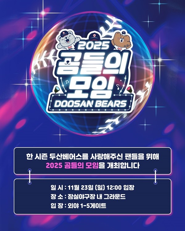 [SPORTALKOREA] 오상진 기자= 두산 베어스가 오는 23일 낮 12시 서울 잠실야구장에서 ‘2025 곰들의 모임’을 개최한다.