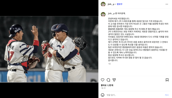 이어 “팀은 바뀌었지만, 팬분들께 받은 응원과 마음은 변하지 않는다”라며 “새로운 곳에서도 더 나은 모습 보여드리고 팬분들이 응원하는 이유를 만들 수 있도록 계속 노력하겠다”라고 말했다.