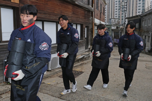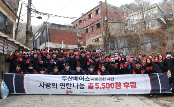 연탄 나눔 행사는 연말을 맞아 저소득 취약계층에 따뜻한 온기를 전하는 사회공헌활동이다. 이번 행사에는 양석환, 김인태, 곽빈 등 선수단 45명과 40명의 팬이 참여해 서울시 서대문구 현저동 일대 주민들에게 연탄 5,500장을 전달했다.