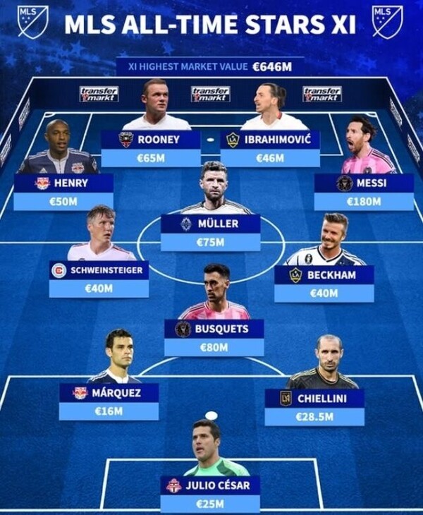 기준은 단순했다. MLS 이적 당시 가장 높은 시장가치를 지닌 선수 11명을 포지션별로 나열했다.