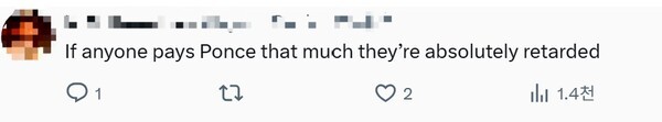 메이저리그 이적 시장을 다루는 'MLBTR' 역시 폰세의 계약 규모를 두고 의문을 제기했다. MLBTR은 "내년이면 32세가 되고 , 2021년 이후 메이저리그에서 던진 적이 없으며, 빅리그에서 뚜렷한 성공을 거둔 적도 없는 투수에게 3,000만 달러가 넘는 계약은 상당한 리스크로 보일 수 있다"고 지적했다.