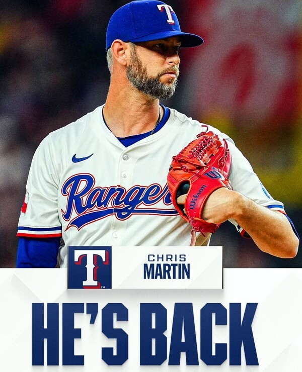 마틴은 올해 텍사스에서 49경기 42⅓이닝을 던지며 2승 6패 2세이브 평균자책점 2.98을 기록했다. 다만 어깨 피로, 왼쪽 종아리 근육 부상, 흉곽 출구 증후군 증상으로 세 차례나 부상자 명단에 올라 한 달 반 이상을 결장했다.