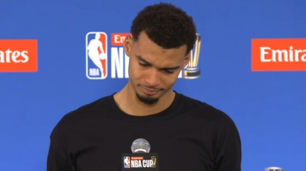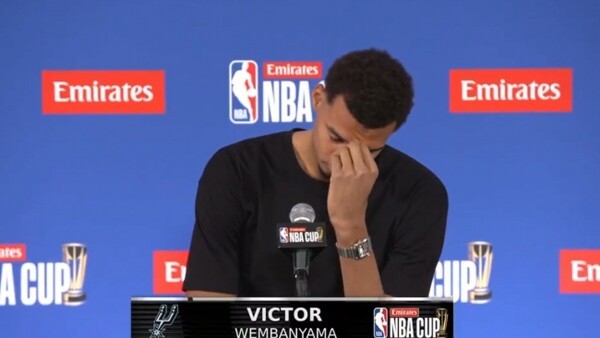 첫 질문을 받은 웸반야마는 “죄송합니다. 오늘 누군가를 잃었습니다. 질문 하나만 더 받겠습니다”라고 말하며 힘겹게 말을 이어갔다.