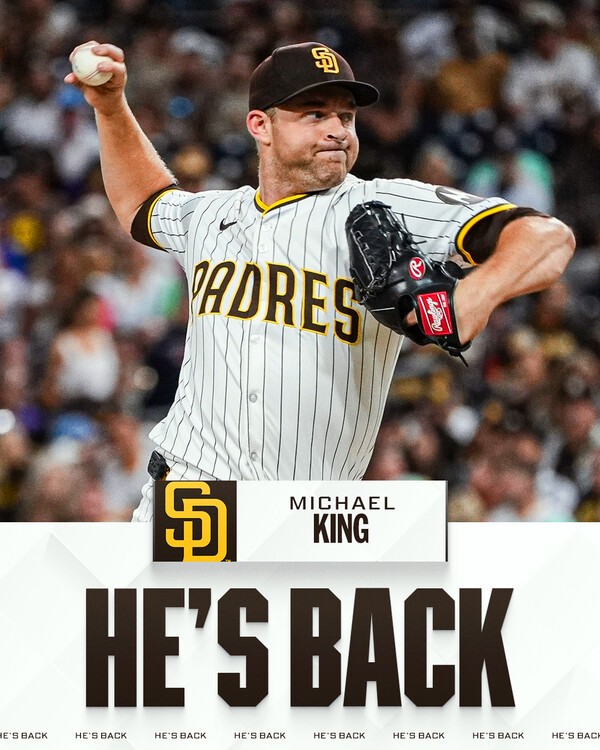2023시즌 49경기(9선발) 4승 8패 6세이브 평균자책점 2.75로 호투한 킹은 이 시즌을 끝으로 샌디에이고 파드리스 유니폼으로 갈아입었다. 후안 소토(뉴욕 메츠) 영입을 위한 2대4 대형 트레이드에 포함돼 이적이 결정됐다.
