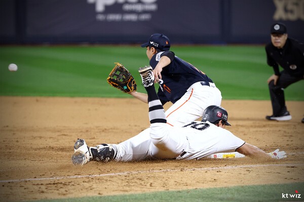 이날 KT는 무조건 무승부 이상 거두고 NC 다이노스가 리그 최종전에서 져야만 5위로 포스트시즌행 ‘막차’를 탈 수 있었다. 9회 초 종료 시점에서 2-6으로 밀리고 있었지만, 9회 말 윤산흠을 공략해 2점 차까지 쫓아간 상황.