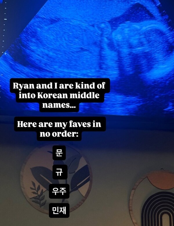 헤일리는 24일(한국시간) 본인의 SNS를 통해 내년 출산 예정인 아들의 이름을 두고 "미들네임에 한글 이름을 넣으려고 한다. 내가 좋아하는 이름들"이라는 글과 함께 '문', '규', '우주', '민재'를 덧붙였다.