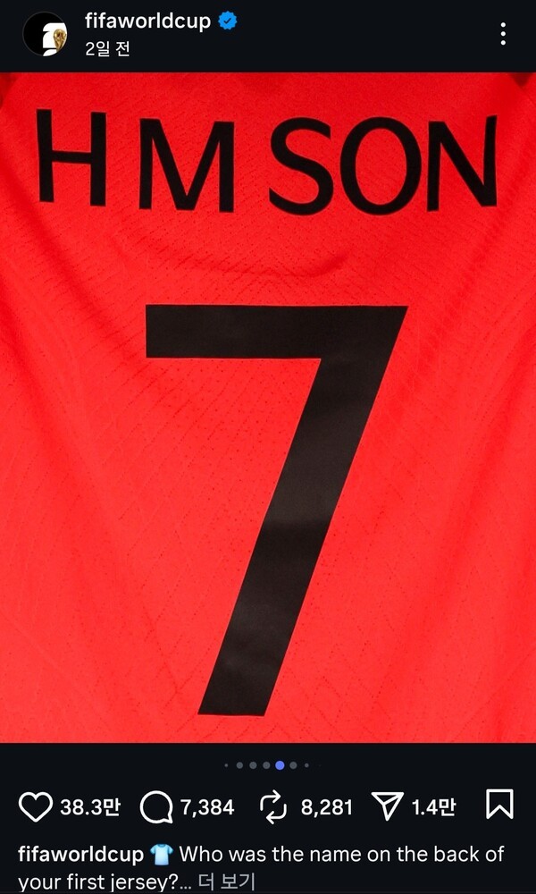 FIFA 월드컵 공식 SNS 계정은 26일(한국시간) “당신의 첫 유니폼 등번호에 적힌 이름은 누구였나요?(Who was the name on the back of your first jersey?)”라는 문구와 함께 총 9명의 선수 유니폼 이미지를 공개했다.