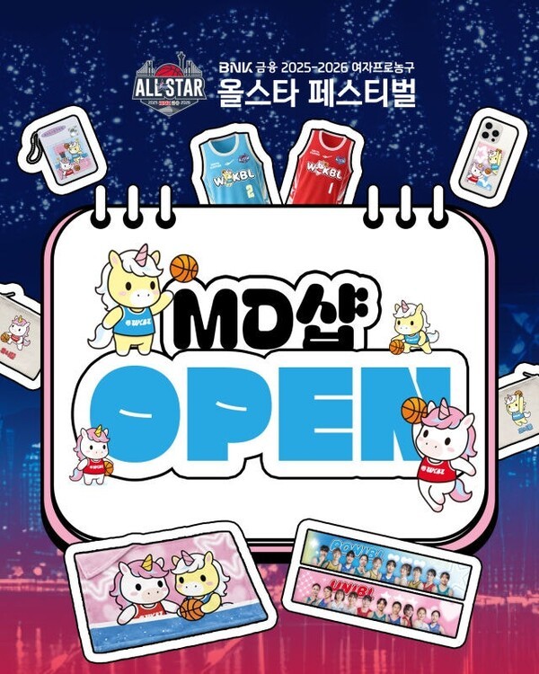 [SPORTALKOREA] 이정엽 기자= WKBL(한국여자농구연맹)은 오는 2026년 1월 3일(토)과 4일(일) 양일간 부산 사직실내체육관에서 열리는 ‘BNK금융 2025~2026 여자프로농구 올스타 페스티벌’을 맞아 팀 유니블과 팀 포니블의 올스타 유니폼을 비롯한 다양한 공식 굿즈를 선보인다고 29일 밝혔다.