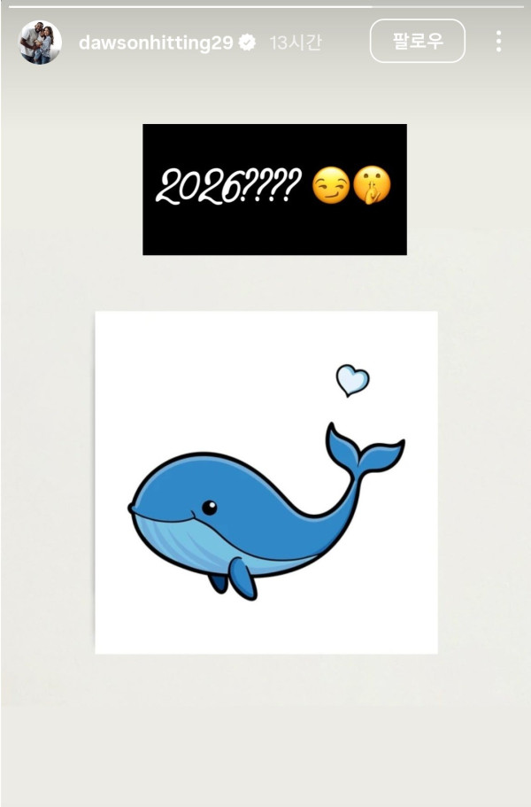 도슨은 2026년 새해가 밝아오자 의미심장한 게시물을 SNS에 올렸다. 그는 고래 그림과 함께 '2026????'이라는 코멘트, 한쪽 입꼬리를 올리며 웃는 표정과 쉿 하는 표정의 이모티콘으로 KBO 복귀 가능성이 떠오르게 했다.