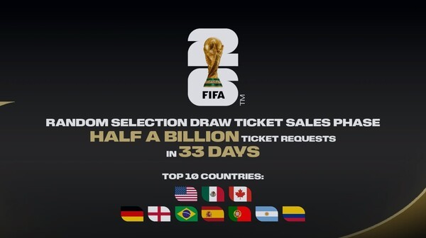 [SPORTALKOREA] 황보동혁 기자= 2026 국제축구연맹(FIFA) 북중미 월드컵을 앞두고 전 세계적인 열기가 전례 없는 수준에 도달했다. 무작위 선택 추첨 방식으로 진행된 이번 티켓 판매에서 무려 5억 건이 넘는 신청이 접수됐다.
