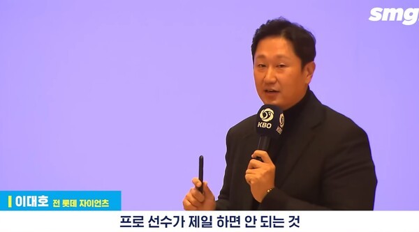 이대호는 지난 14일 열린 '2026 KBO 신인 오리엔테이션'에서 신인 및 육성 선수를 대상으로 프로선수로서 갖춰야 할 자세를 주제로 강연에 나섰다.