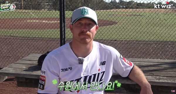KT 구단은 지난 27일 공식 유튜브 채널을 통해 스프링캠프 훈련 영상을 공개했다. 눈에 띄는 선수가 있다. '신입생' 외인 투수 맷 사우어다.