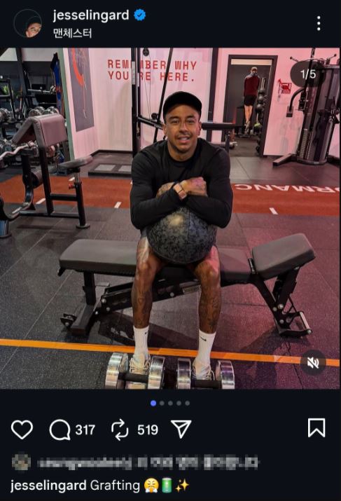 보도에 따르면 린가드는 최근 자신의 인스타그램에 헬스장과 훈련장에서 촬영한 사진 여러 장을 게시하며 ‘Grafting(죽도록 노력 중)’이라는 문구를 남겼다.