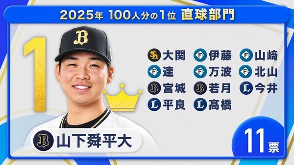 이마이 타츠야(휴스턴 애스트로스), 이토 히로미(홋카이도 닛폰햄 파이터즈), 타이라 카이마(사이타마 세이부 라이온즈) 등 2025시즌 NPB에서 정상급 구위를 자랑한 선수들이 전부 야마시타에게 표를 던질 정도로 동료 선수들로부터 특출나다는 평가를 받았다.