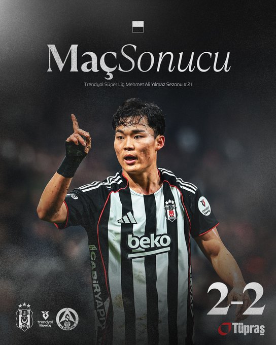 베식타스는 9일(한국시간) 튀르키예 이스탄불의 튀프라쉬 스타디움에서 열린 2025/26시즌 쉬페르리가 21라운드 홈경기에서 알란야스포르와 2-2로 비겼다.
