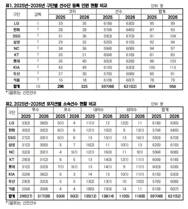 [공식발표] 사상 최대! 프로야구 2026시즌 621명 등록…SSG 67명 최다, 한화·LG 뒤이어