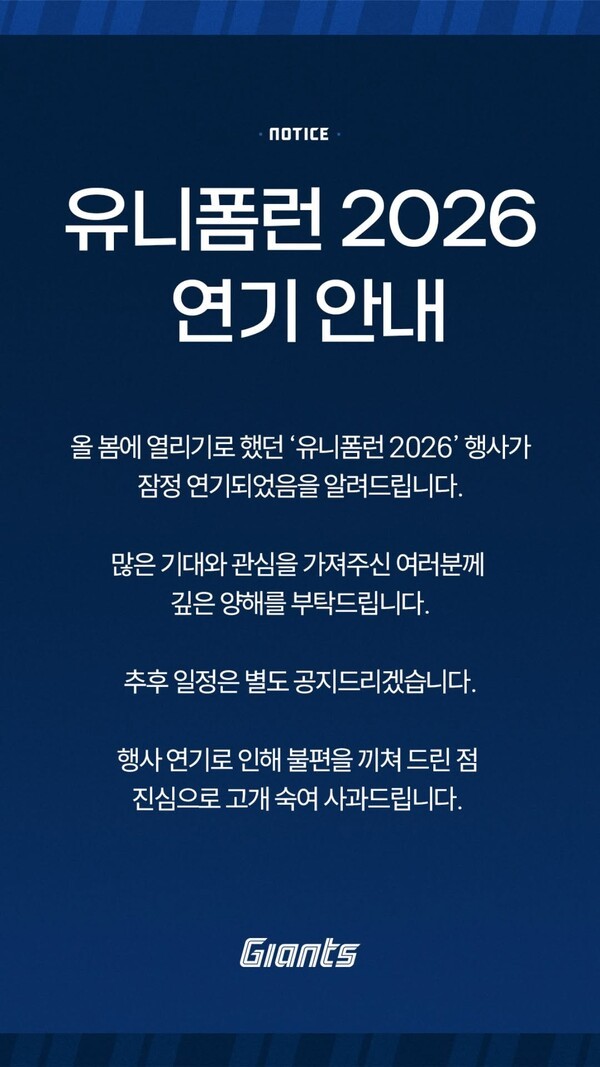 롯데는 19일 공식 소셜미디어(SNS)를 통해 "올봄에 열리기로 했던 '유니폼런 2026' 행사가 잠정 연기됐다"고 전했다.