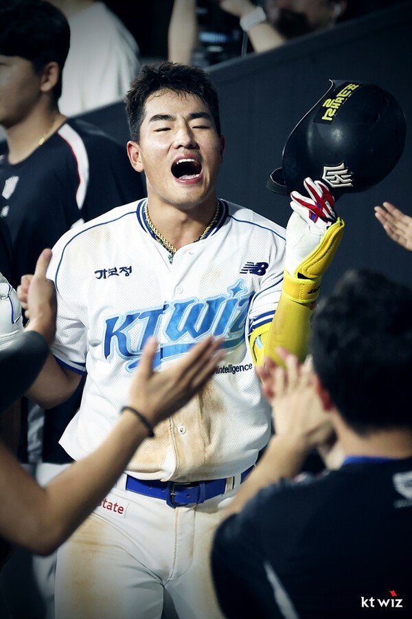 안현민은 지난해 KT를 넘어 KBO리그 야수진 최고의 ‘히트 상품’이라고 할만한 성과를 남겼다. 2024년까지만 하더라도 이름 없는 2군 선수에 불과했지만, 4월 말 1군에 합류한 뒤 5월부터 불방망이를 휘두르기 시작했다.