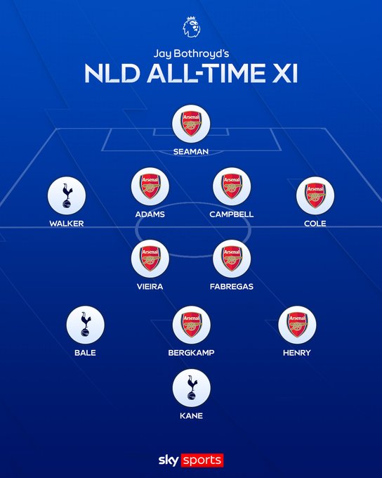 이런 가운데 영국 ‘스카이스포츠’가 경기 열기를 더욱 달구는 주제를 꺼내 들었다. 스카이스포츠는 21일 공식 채널을 통해 “제이 보스로이드가 북런던 더비 역대 베스트 11을 공개했다! 여러분 생각은?”이라는 글과 함께, 과거 잉글랜드 국가대표 공격수 보스로이드가 선정한 명단을 공개했다.