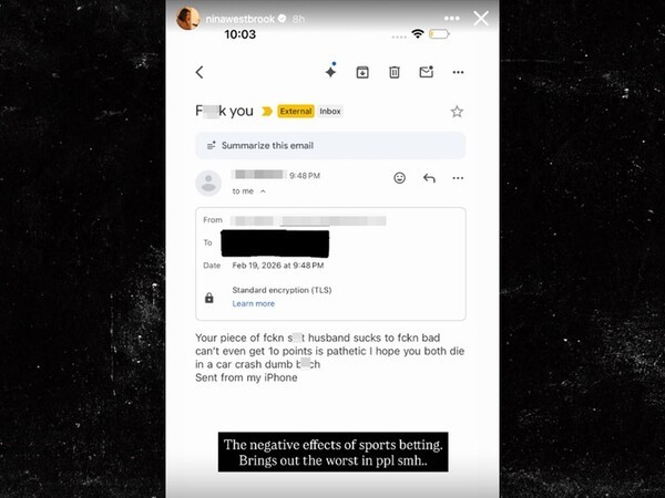 그러면서 한 익명의 팬이 보낸 이메일을 공개했는데, 해당 팬은 자신의 스포츠 베팅을 망쳤다는 이유로 웨스트브룩과 그의 아내를 향해 분노를 쏟아냈고 욕설로 가득 찬 메시지는 해석의 여지조차 없는 살해 협박이었다.