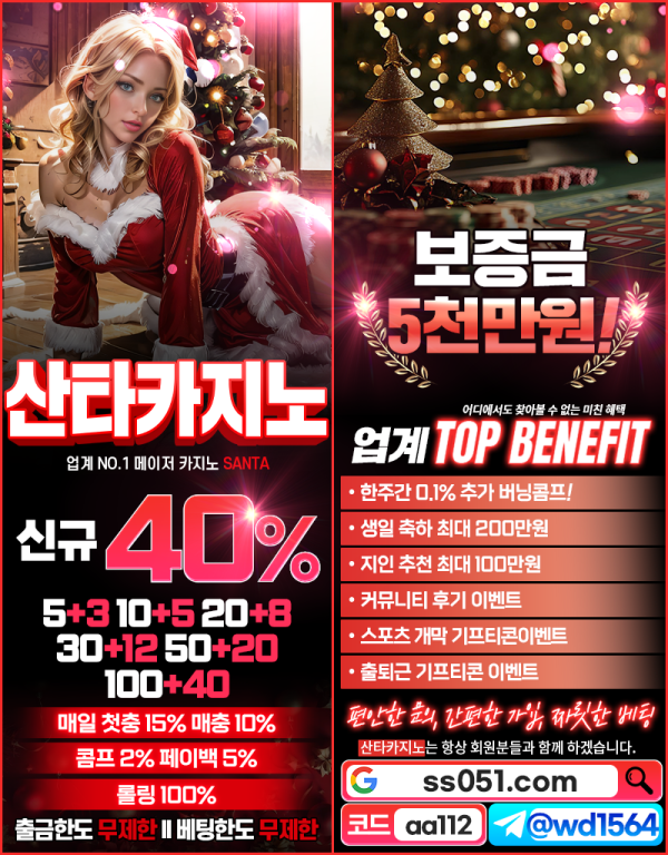 ✨월드 산타 어느날✨맛집1위✨무제제 무사고✨모든게임 가능✨첫충 입플 매충 페이백 출석✨미니게임 전용✨카지노 전용…